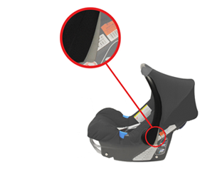 For helt præcist at identificere din babystol som en BABY-SAFE, skal du se efter, om justeringsknapperne til bærehåndtaget sidder på bærehåndtagets omdrejningspunkt. Én på hver side.